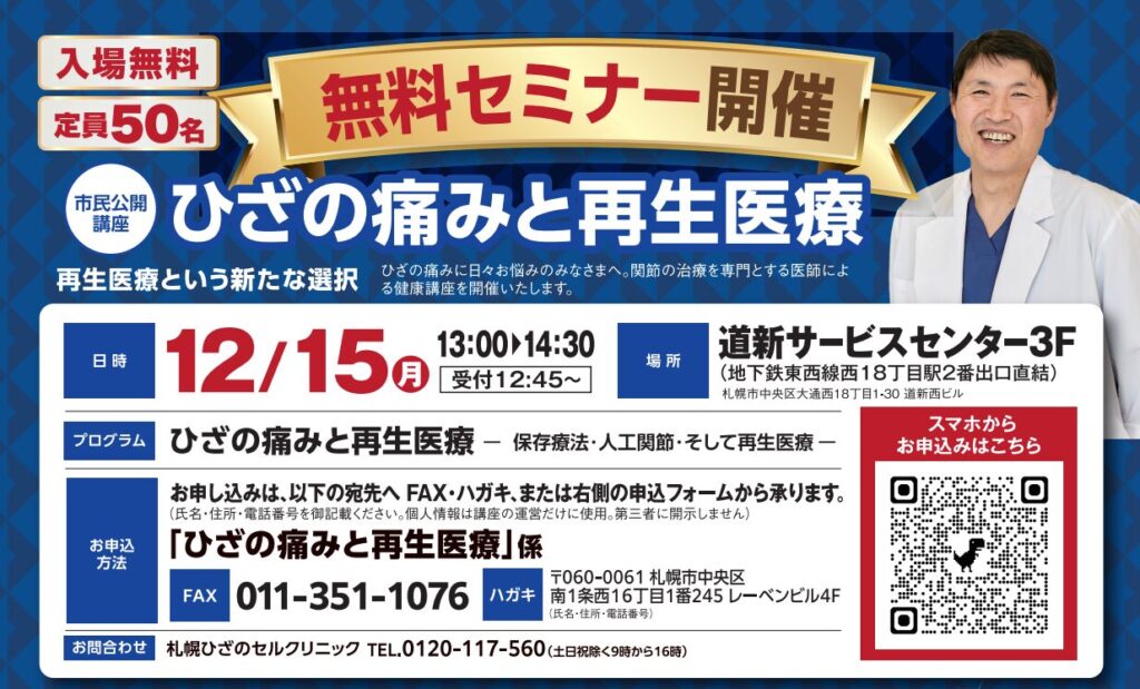 講演会 12月15日㈪ 13時 札幌 道新西ビル3階 イベントホール講演会 1月23日㈮ 13時 札幌 道新西ビル3階 イベントホール