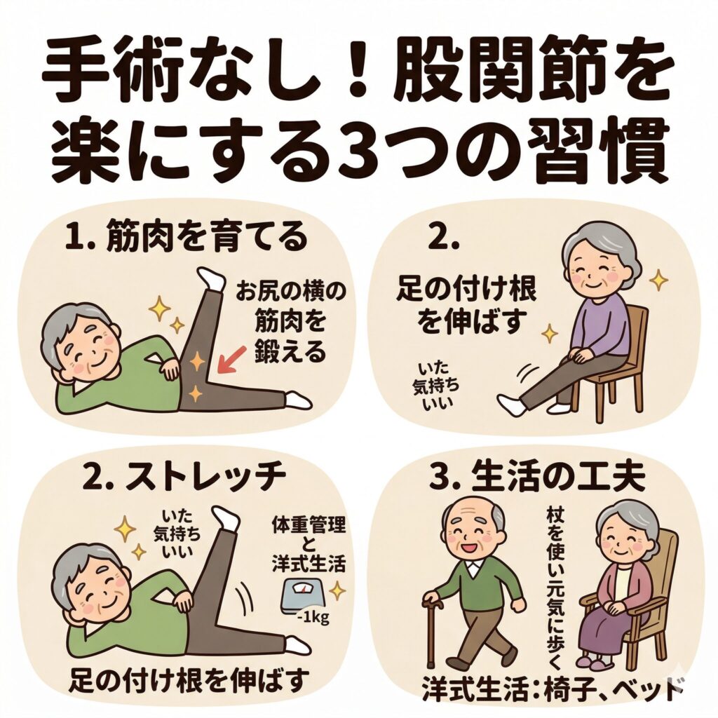 生活習慣のちょっとした変化が、股関節を救います。