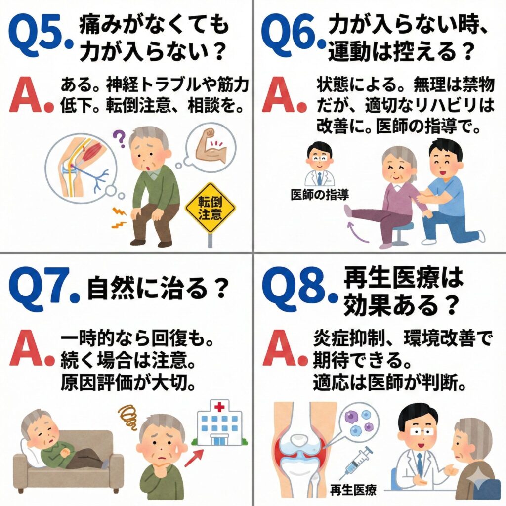 Q8. 再生医療は膝に力が入らない症状にも効果がありますか?