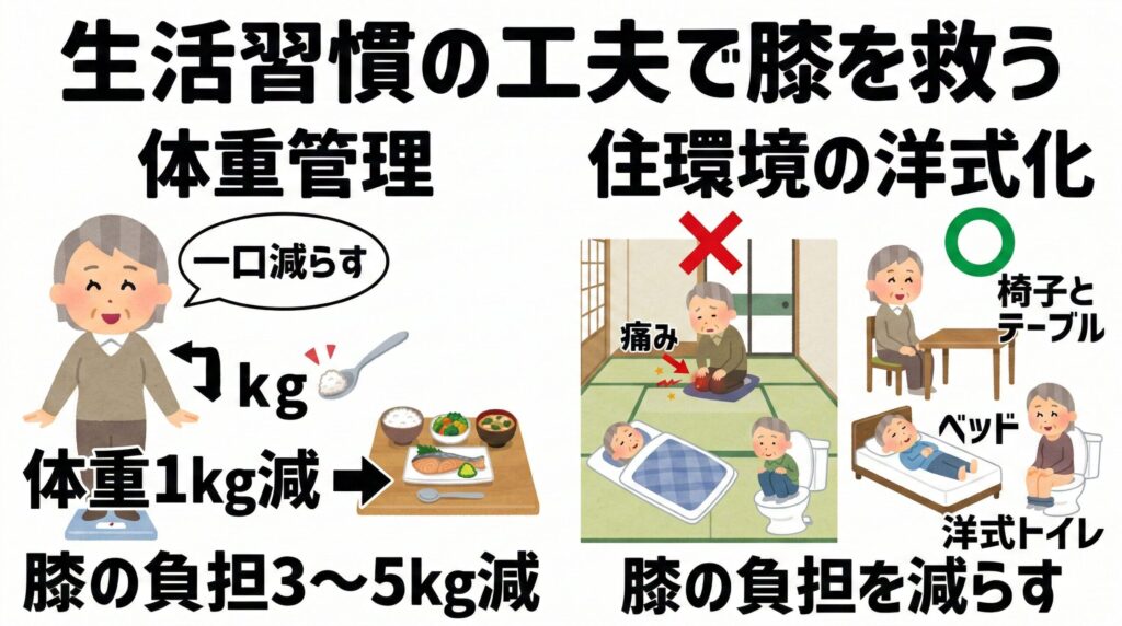日々の生活の中にも、膝の負担を減らすヒントが隠されています。