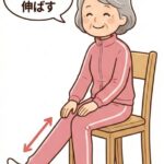- 椅子に浅く腰掛け、片方の足を前に出します。
