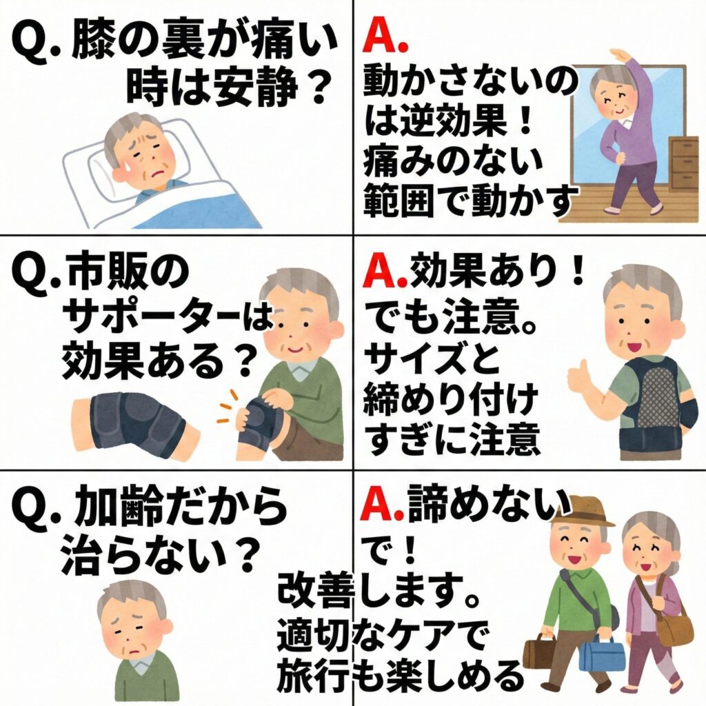 膝の裏の痛みは、正座ができない、階段が怖いといった、日々の小さな喜びを奪ってしまうかもしれません。しかし、その原因を正しく理解し、適切な対策を講じることで、多くの場合、症状は改善に向かいます。