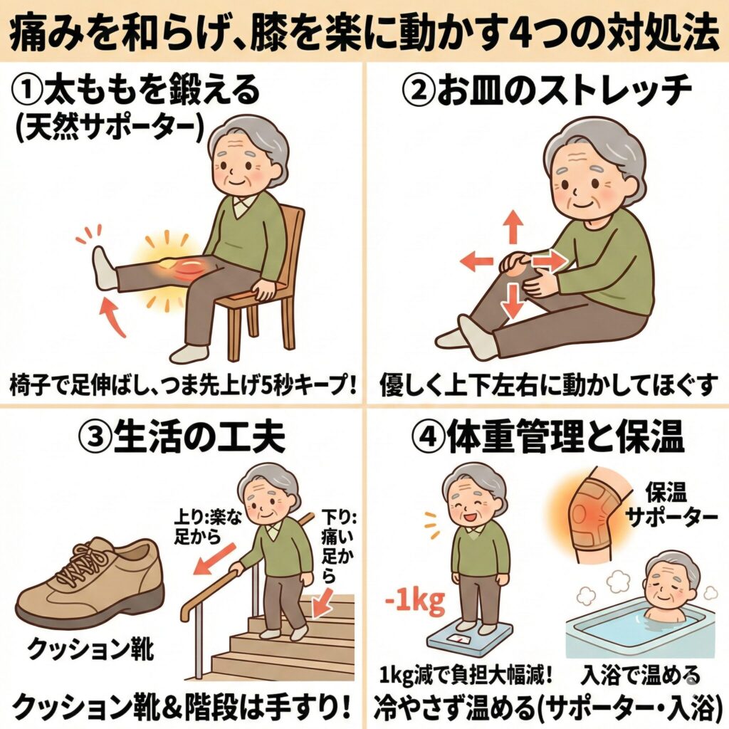 痛みを和らげ、膝を楽に動かすための4つの対処法