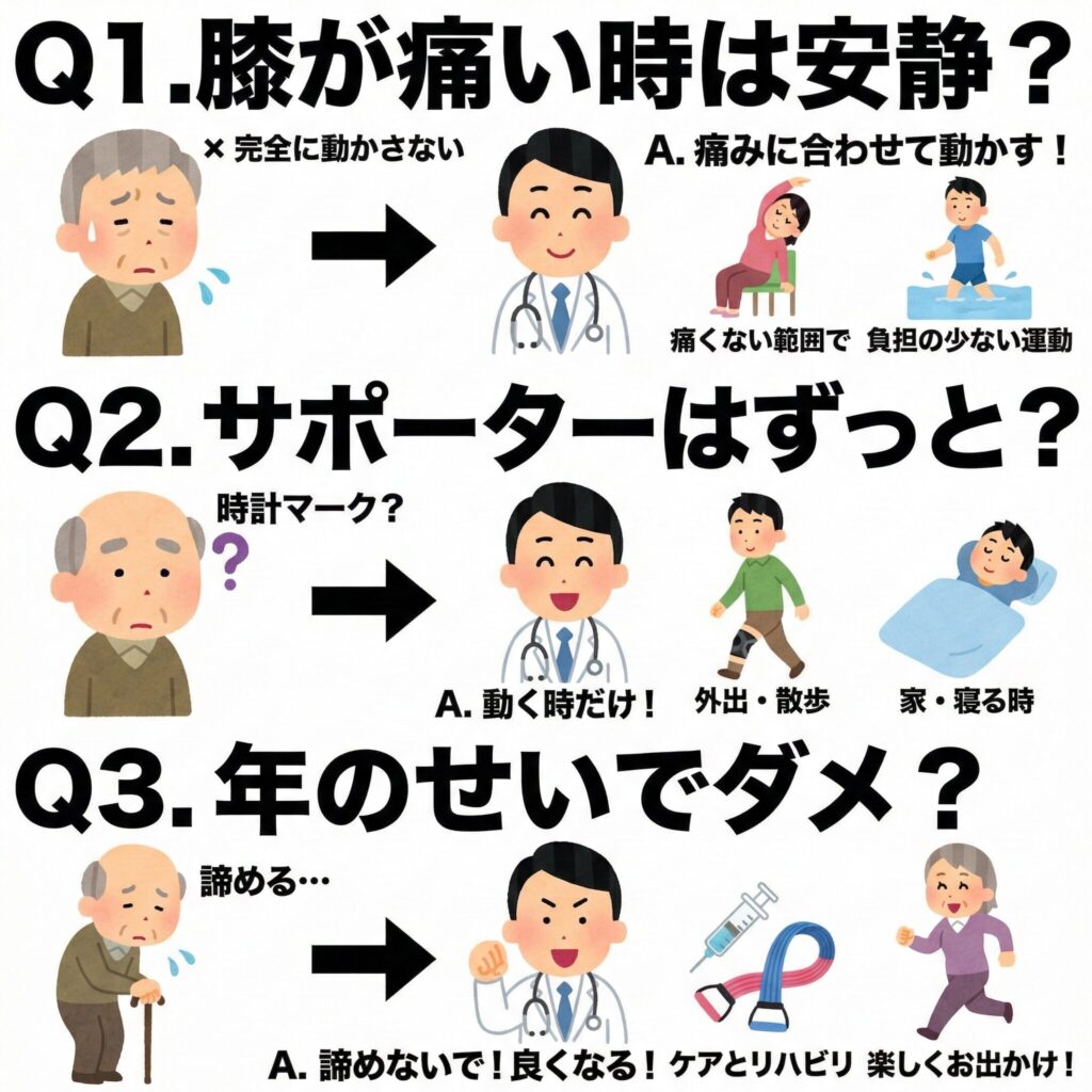 Q1. 膝に痛みがあるときは、安静にして動かさないほうがいいですか?