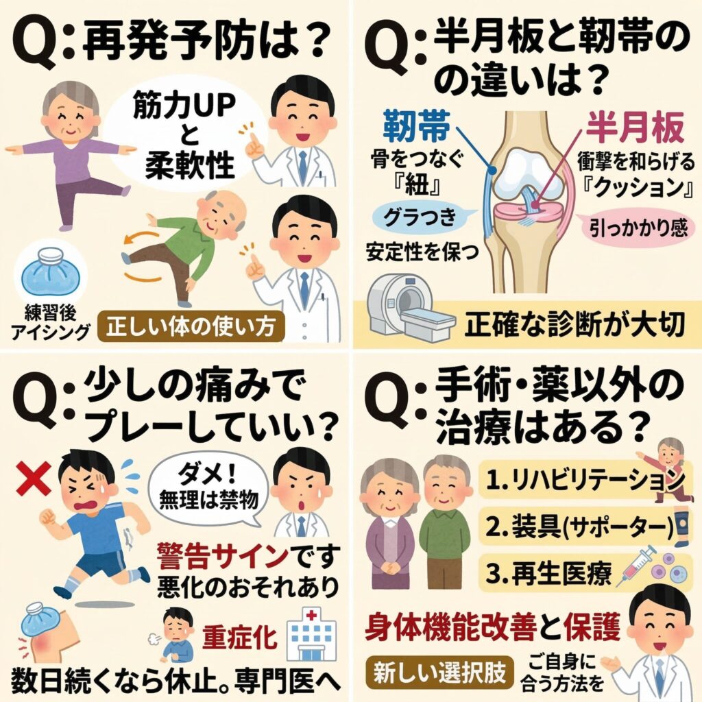 膝の怪我を繰り返さないための予防法はありますか?