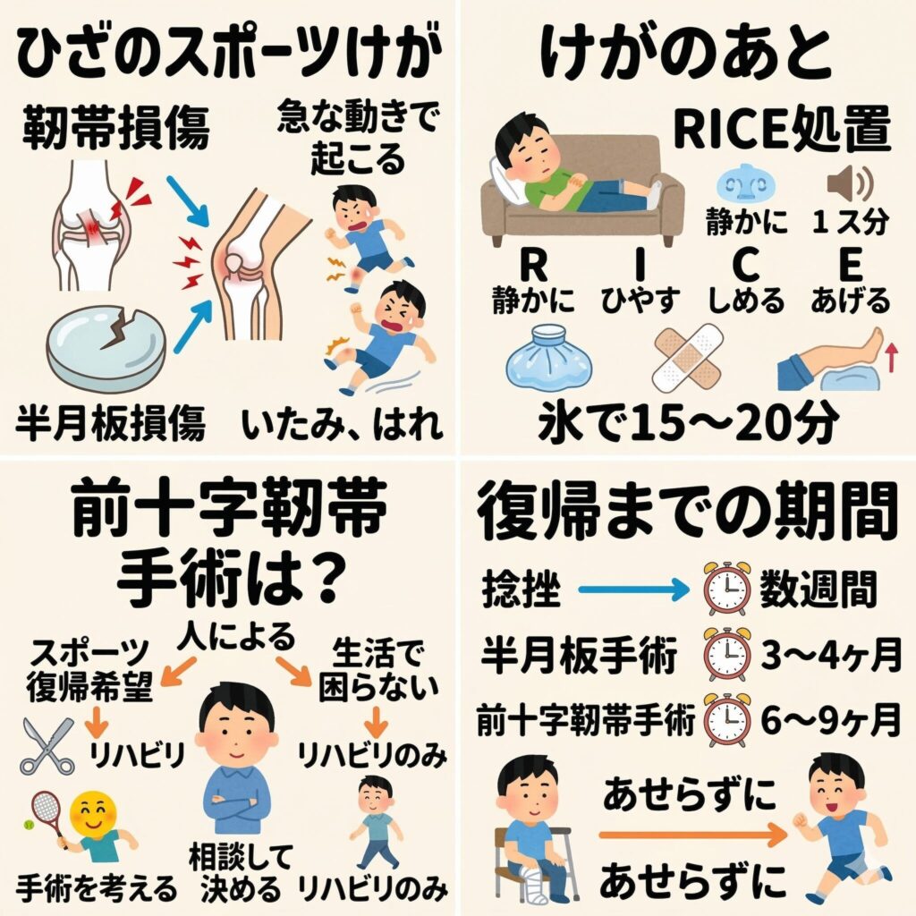 膝のスポーツ外傷は、部活動に励む学生さんから趣味でスポーツを楽しむ大人の方まで、非常に多くの方が直面する悩みです。痛みや違和感があると「また元通りのプレーができるだろうか」と不安になりますよね。