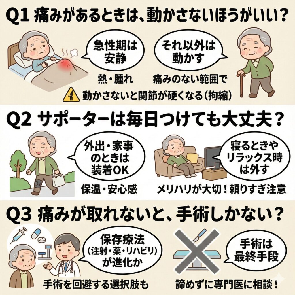 膝の痛みに関して、患者さんからよくいただく質問にお答えします。