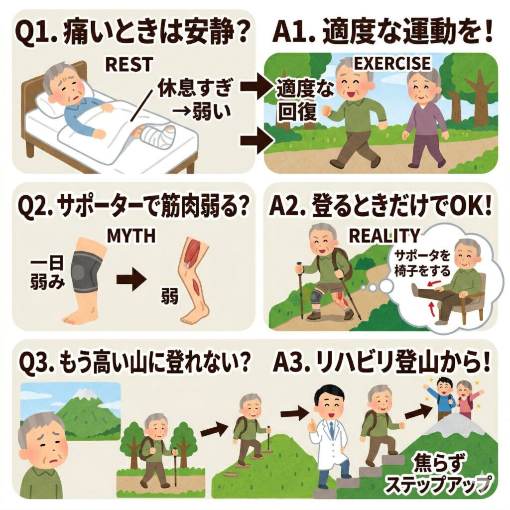 山登りと膝の痛みについて、患者さんからよくいただく質問にお答えします。
