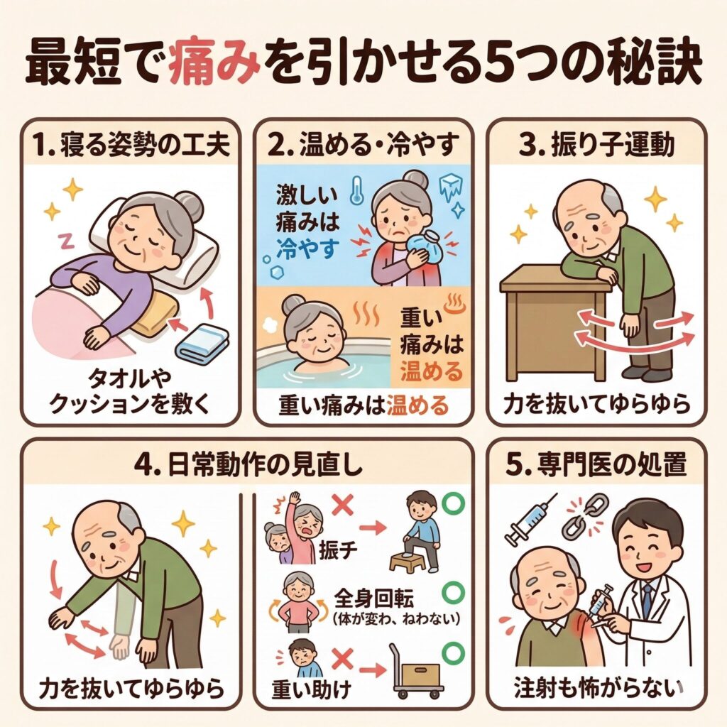 それでは、夜も眠れないほどの痛みを解消し、最短で日常生活を取り戻すための5つの秘訣をお伝えします。