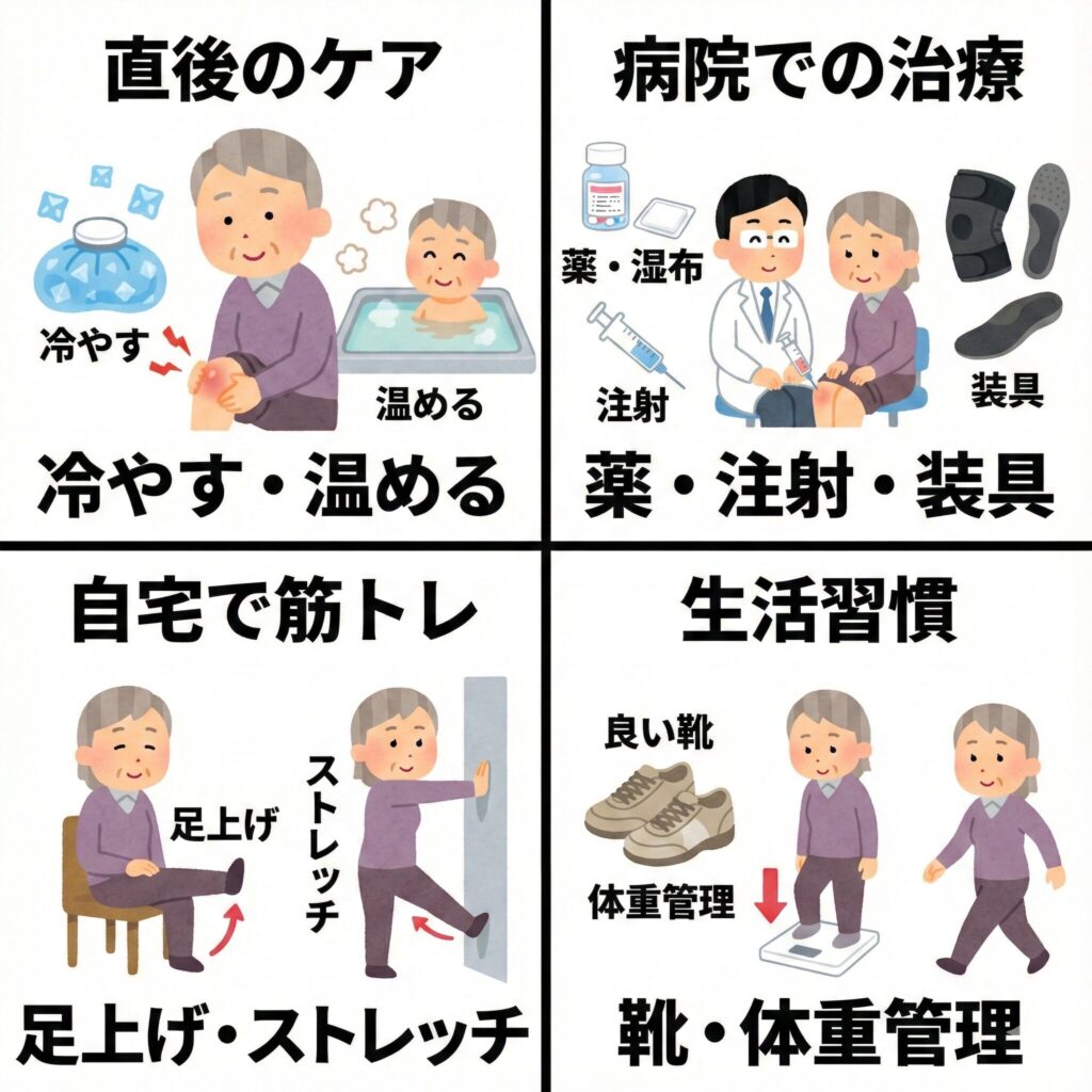 膝の痛みを感じたら、まずは無理をしないことが一番ですが、それだけでは根本的な解決になりません。再発を防ぐための具体的な方法をご紹介します。